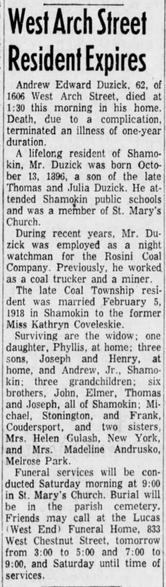 St. Mary's Cemetery Coal Township Pennsylvania