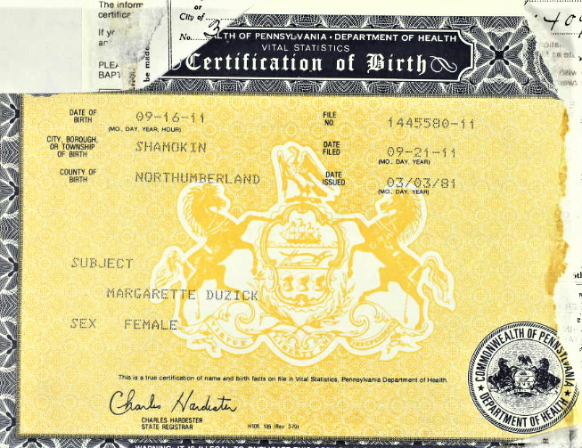 Madeline was born as Margarette. Mid-wife Susie Gally. See next block for name change,